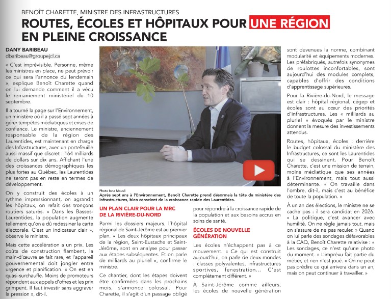 Dans les Laurentides, trois projets sont touchés : une école primaire à Sainte-Sophie, une à Mirabel (secteur Saint-Canut/Saint-Colomban) et une à Lachute.»