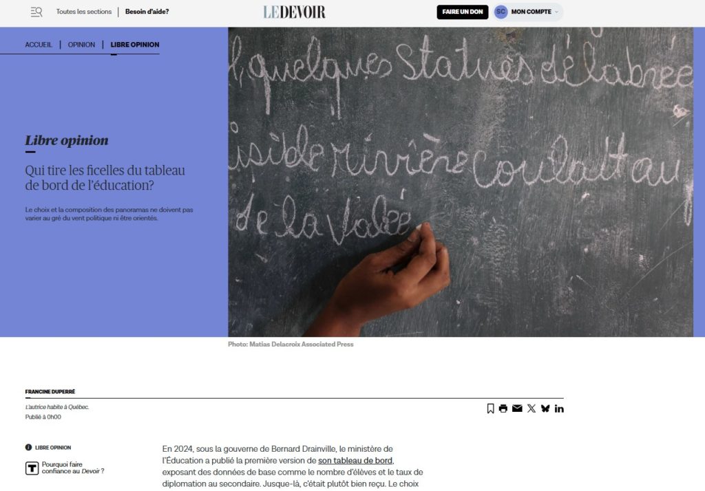 «Pénurie d’enseignants, écoles vétustes, taux de décrochage trop élevé, problèmes d’apprentissage en hausse chez nos jeunes, etc. Avez-vous l’impression que le réseau de l’éducation au Québec est un véritable gâchis ?»