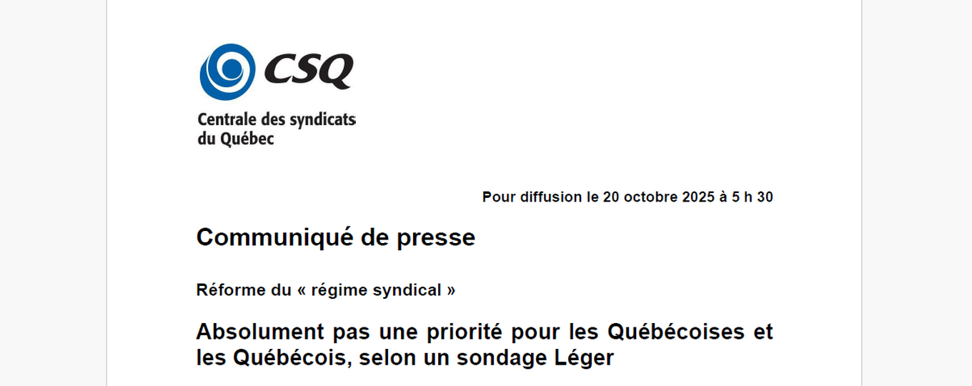 Réforme du régime syndical: «Absolument pas une priorité», selon un sondage Léger