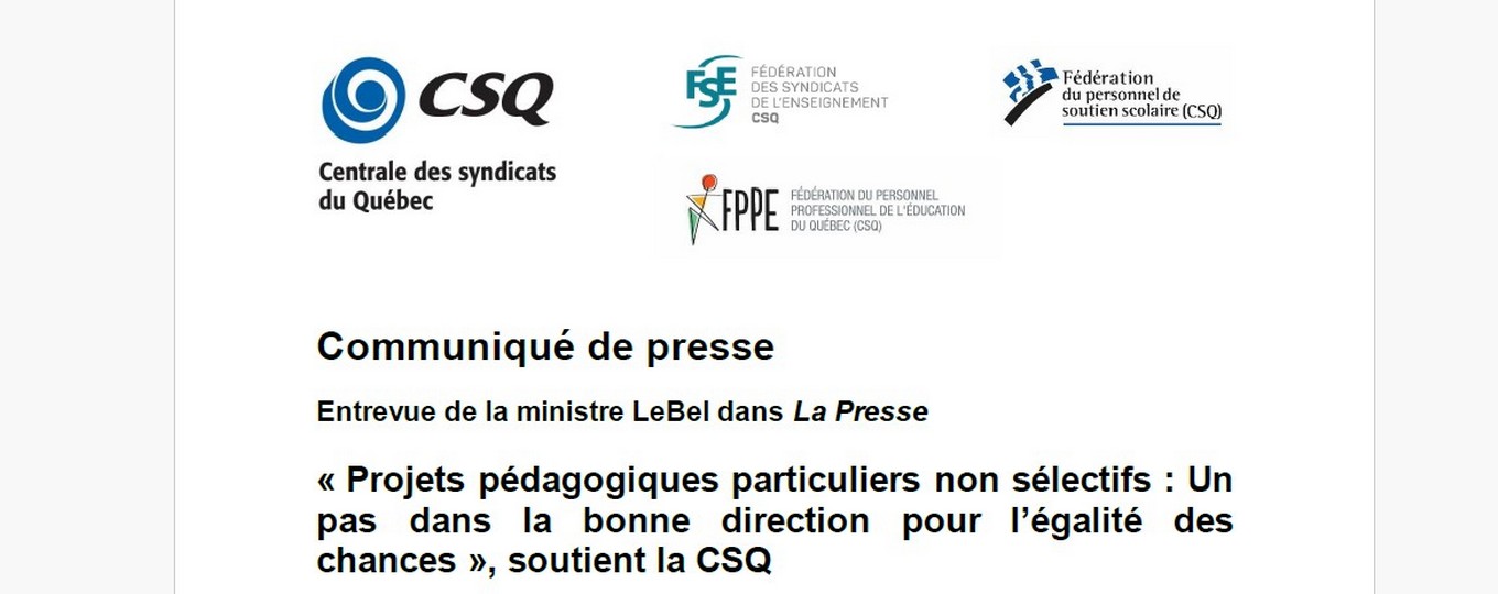 SOUS EMBARGO – Communiqué de presse – Sondage de la FSE-CSQ – 88 % des Québécois pensent qu’il faut protéger le financement du réseau de l’éducation