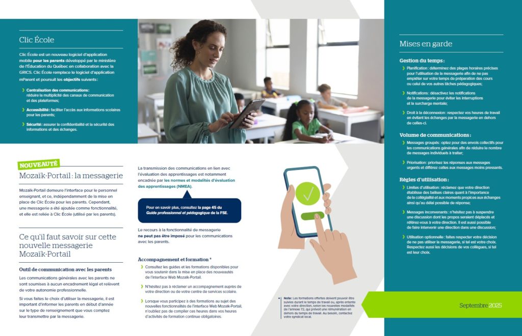 Depuis le 10 septembre, le déploiement progressif de Clic École pour les parents est officiellement lancé et devrait se poursuivre jusqu’en juin 2027.